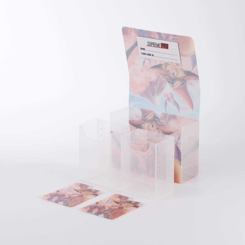 Built to hold up to 2 full-size trading card decks, the Ash’s Halloween Deck Box is made with the same durable construction SupremePro is known for, now with a hauntingly beautiful seasonal artwork. Perfect for tournament play, casual duels, or collectors who want their accessories to stand out.